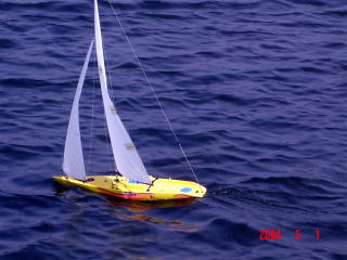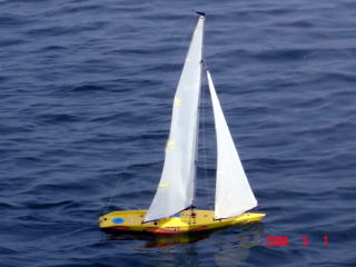 京商のSEA DOLPHINは入門用の艇長77cm、小さなヨットです。この一艘でRCヨットの基本はマスターできるし、RCヨットの楽しさを味わえる。動体視力が落ちたと感じるシニアー、RC初心者も安心して遊べる。